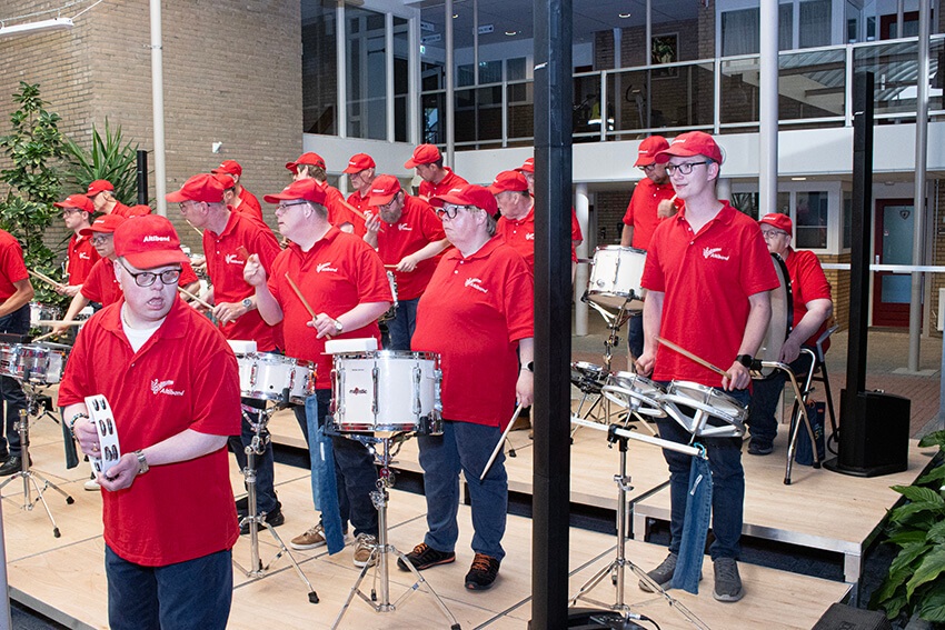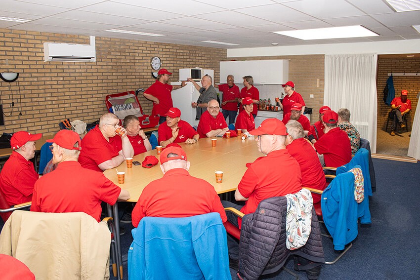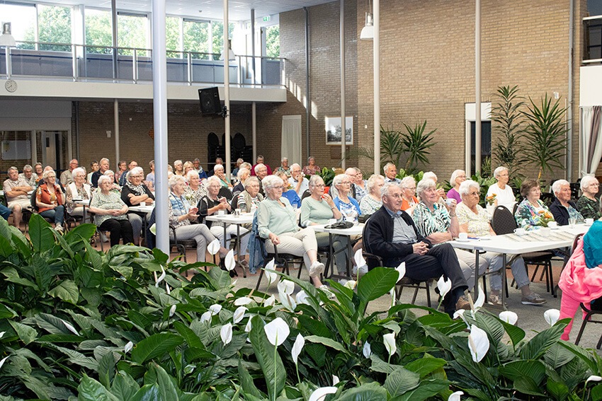 Leden, Bert, bestuur, vrijwilligers en de bezoekers in de zaal gaan enthousiast richting huis.
